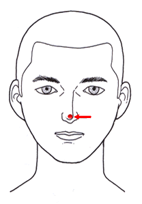 人差し指の腹をツボより上の鼻梁に、触れるか触れないかくらいに当てます。